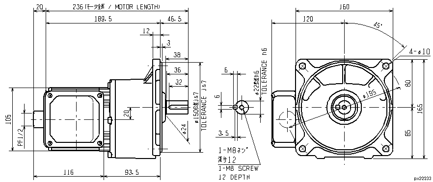 外形寸法図(GV-SF 0.1kW 1/120~1/200)