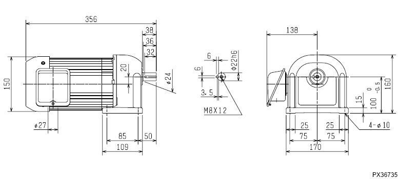 外形寸法図(GM-SP 0.75kW 1/3~1/30)