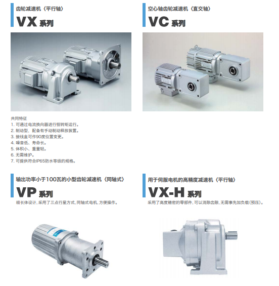 标准型:顶跑者基准对应齿轮马达,异电压马达,采用低噪音无极电动机,加强防止润滑脂泄漏,小型・轻量化
